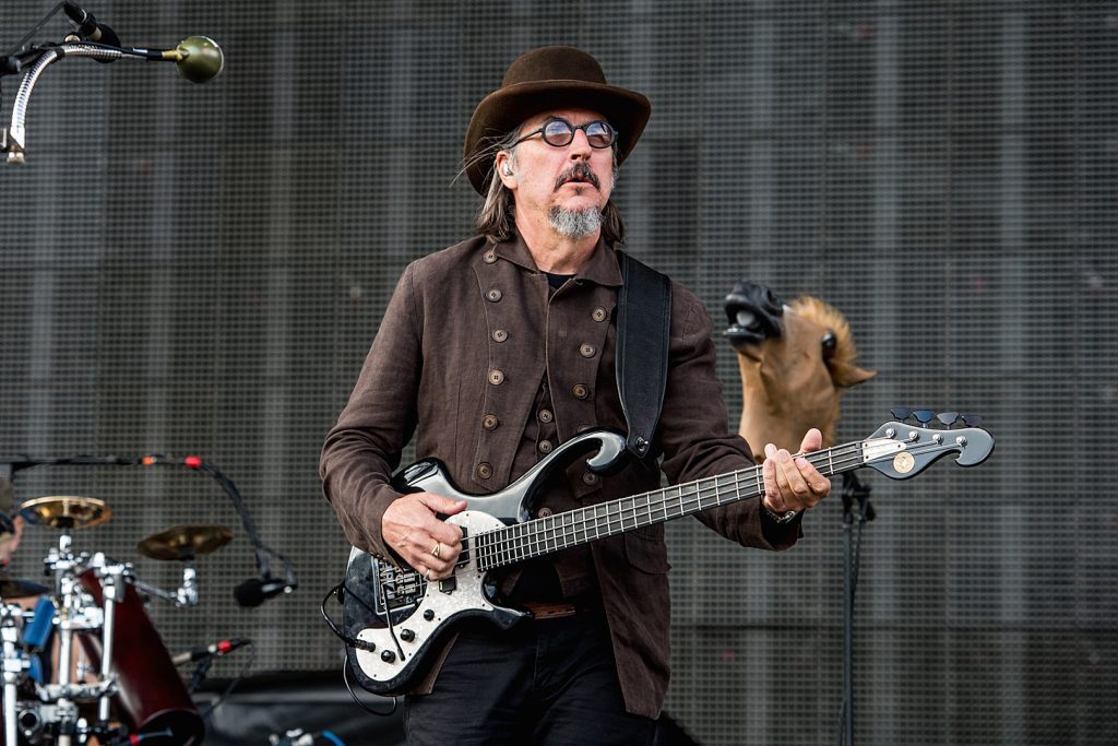 Les Claypool dengan bentuk bassnya yang unik (sumber: Loudwire)